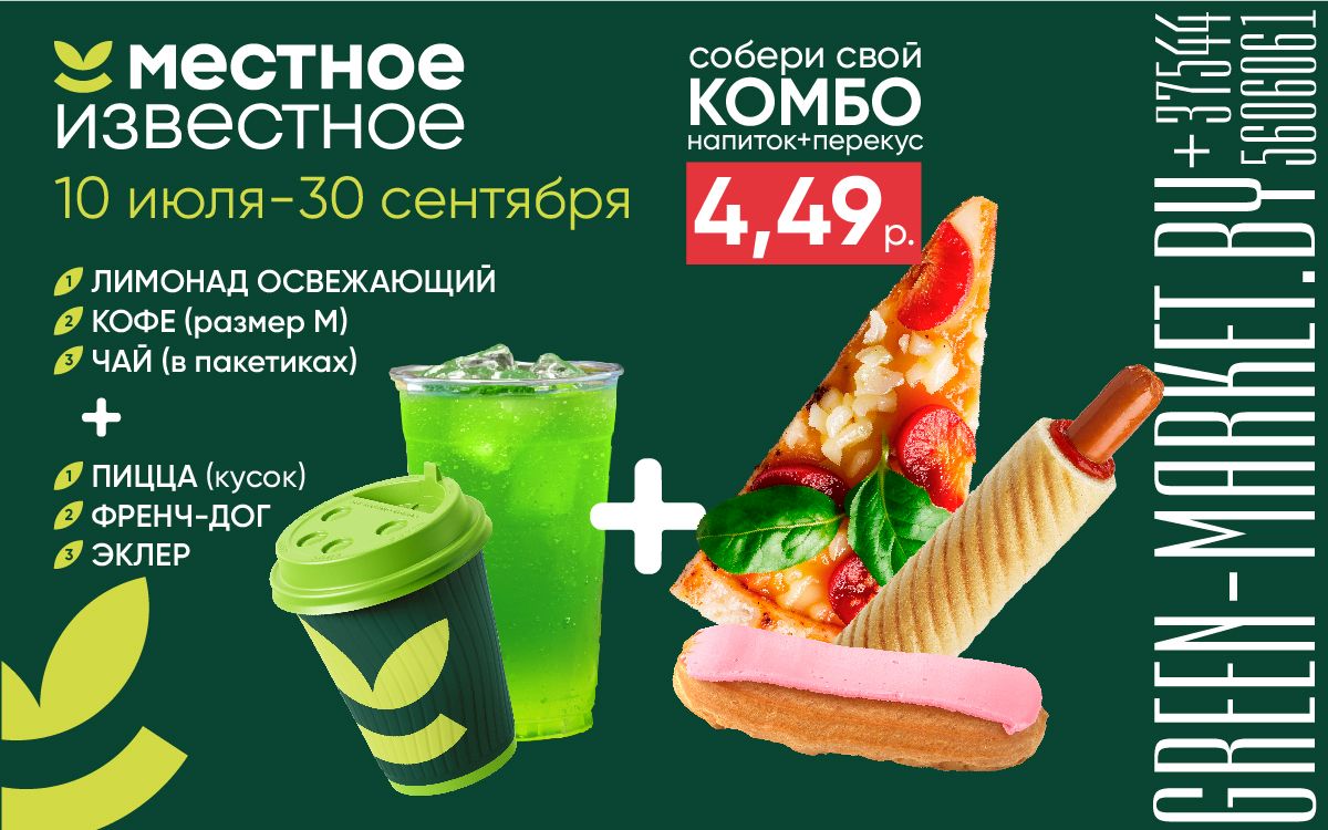 С 10 июля по 30 сентября в магазинах «Местное Известное» вас ждет отличное предложение! Не упустите возможность насладиться вкусным КОМБО всего за 4,49 руб.😍