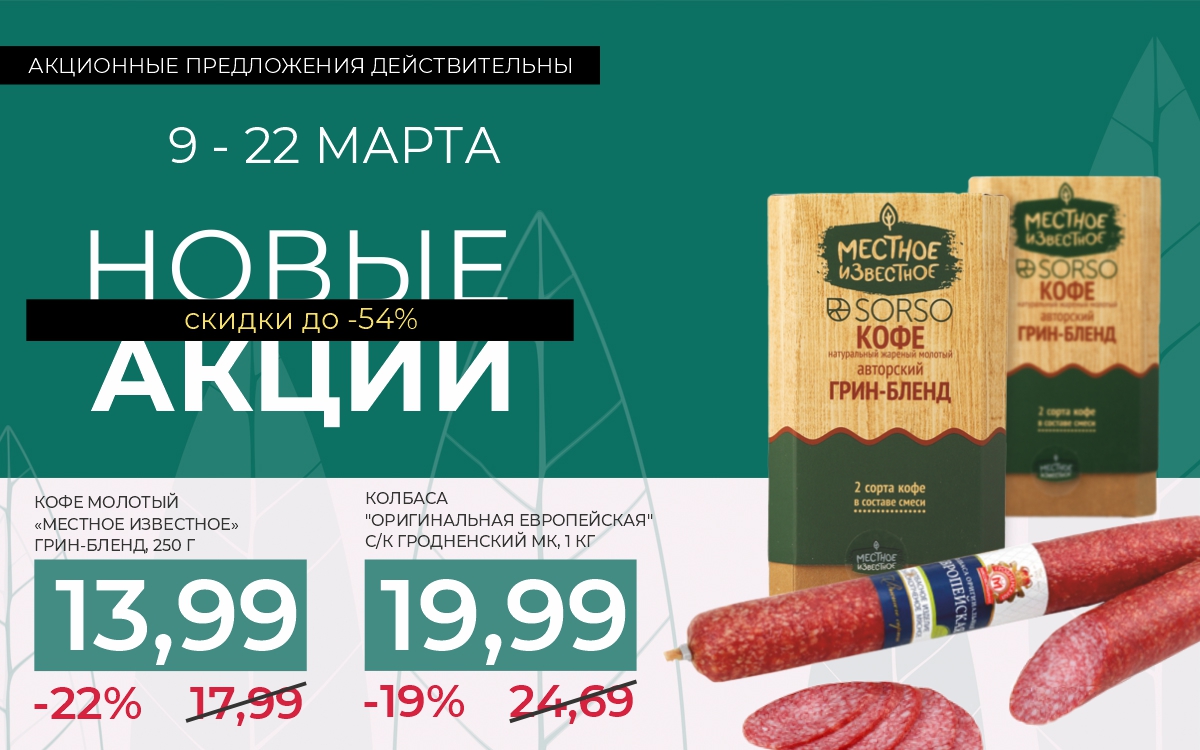 Предложение ограничено. Скидки не суммируется с другими видами дисконтов и не распространяются на: акционные товары, алкогольную и табачную продукцию, а также товары, цены на которые регулируются государственными органами. При расхождении цен, указанных в рекламных материалах и магазине, правильными считать цены в магазине. Цены в акционной листовке носят справочный информацию!