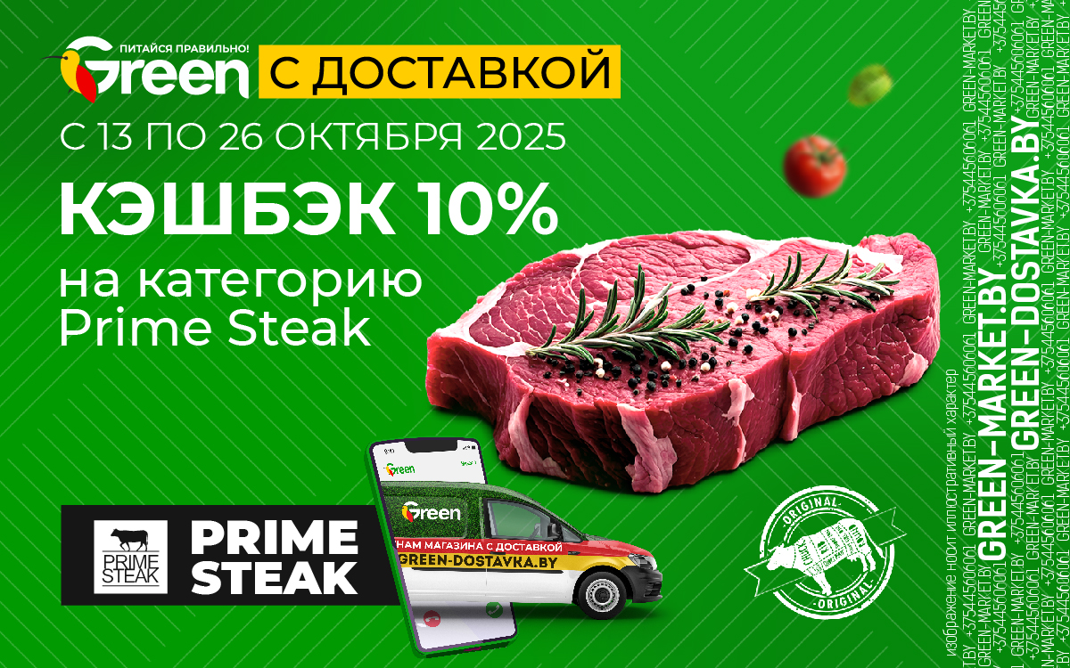 С 13 по 26 октября получите КЭШБЭК 10% при покупке продукции категории Prime Steak.