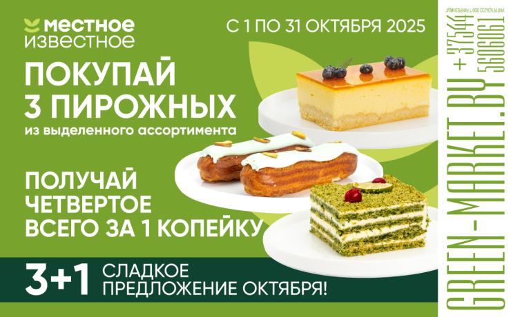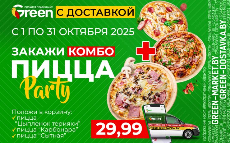 *Акция не распространяется на пиццы "Карбонара", 490 г, "Пепперони" острая, 470 г, и "Королевская", 475 г. Акция не действует в сервисе доставки green-dostavka.by. Акция не распространяется на алкогольную и табачную продукцию, на товары-участники других акций.