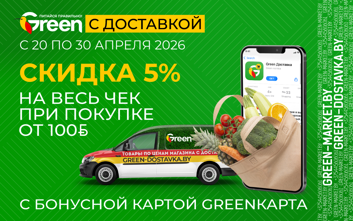 С 20 по 30 апреля делайте заказ продуктов с Green-доставкой от 100 рублей и получайте СКИДКУ 5% на весь чек