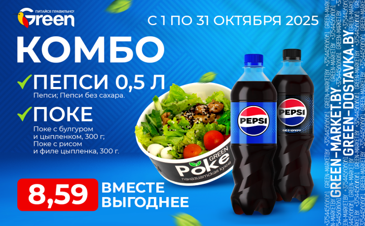 Скидка предоставляется на кассе и не суммируется с другими акциями. Количество акционного товара ограничено. Действие акции не распространяется на сервис доставки green-dostavka.by.